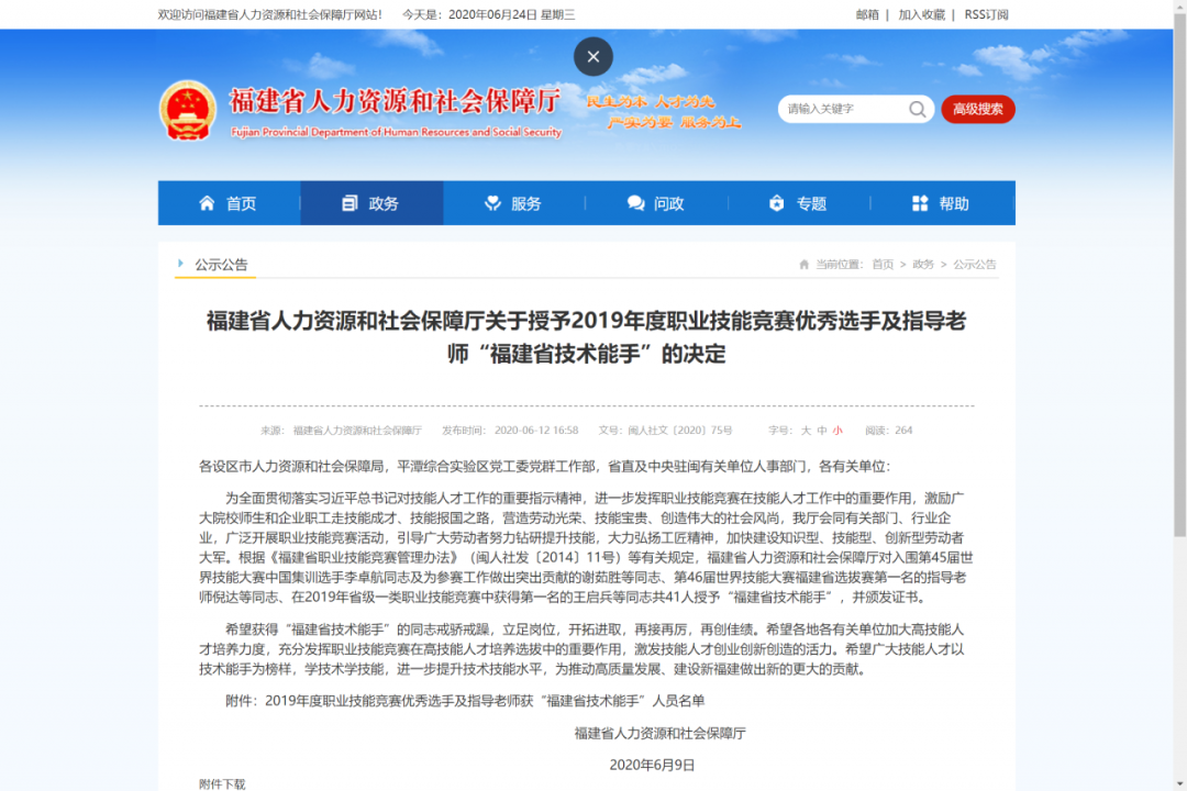 李卓航,MG游戏网站2019届毕业生,现就职于厦门滨捷汽车服务有限公司。2018年,就读于MG游戏网站车辆工程系的李卓航入选第45届世界技能大赛汽车技术项目国家集训队。 朱建风,车辆工程系教师,高级实习指导教师、高级技师,先后荣获福建省优秀指导教师、福建省优秀教师、福建省技术能手、厦门市五一劳动奖章、厦门市优秀教师荣誉称号。