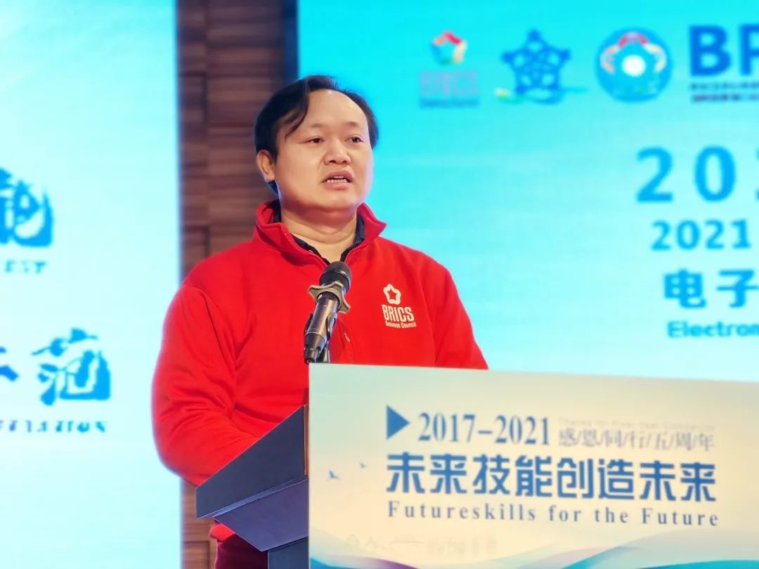 闭幕式上,厦门市人力资源和社会保障局党组成员、副局长彭新良,厦门市金砖创新基地建设领导小组办公室副主任李铭,金砖国家工商理事会中方技能发展工作组组长、一带一路暨金砖国家技能发展国际联盟理事长、金砖国家技能发展与技术创新大赛组委会执委会主席刘振英,MG游戏官网党委书记、院长张家雄,MG游戏官网党委委员、副院长黄曼霞,中国发明协会组织宣传联络部部长朱汉夫,增材制造赛项裁判长、快速制造国家工程研究中心创新教育研究与培训基地总工程师张冲,电子信息技术赛项裁判长、福建信息职业技术学院产学研合作处处长何用辉,机械设备装调与控制技术赛项裁判长、彬州市职业教育中心教授高恒等领导嘉宾出席活动。