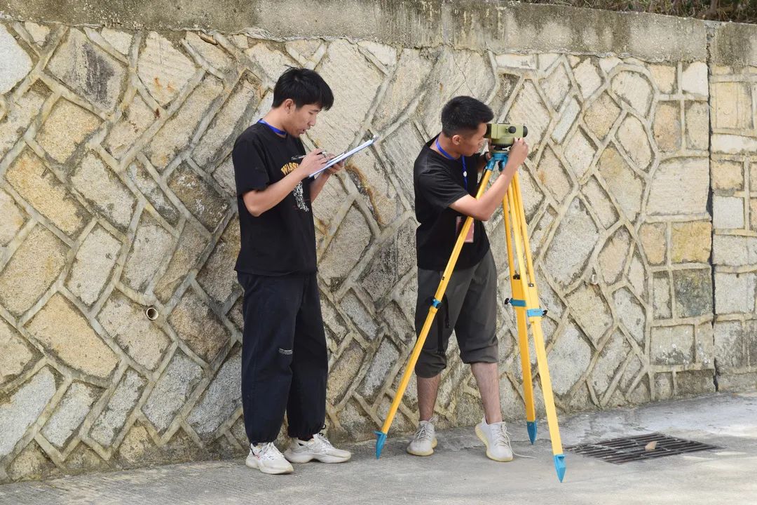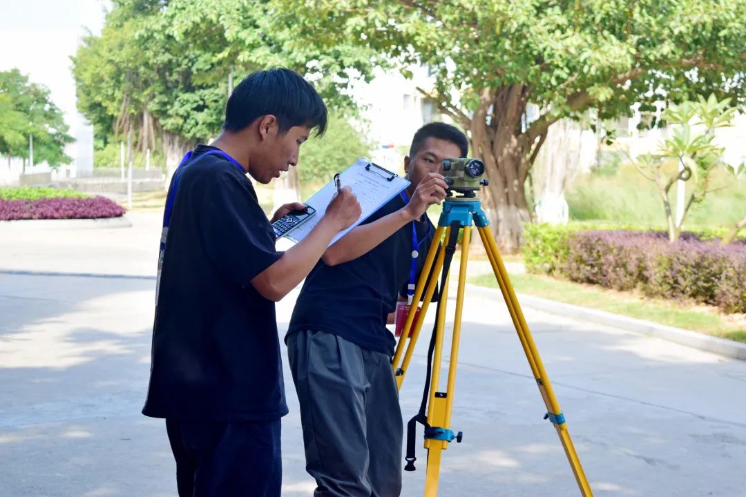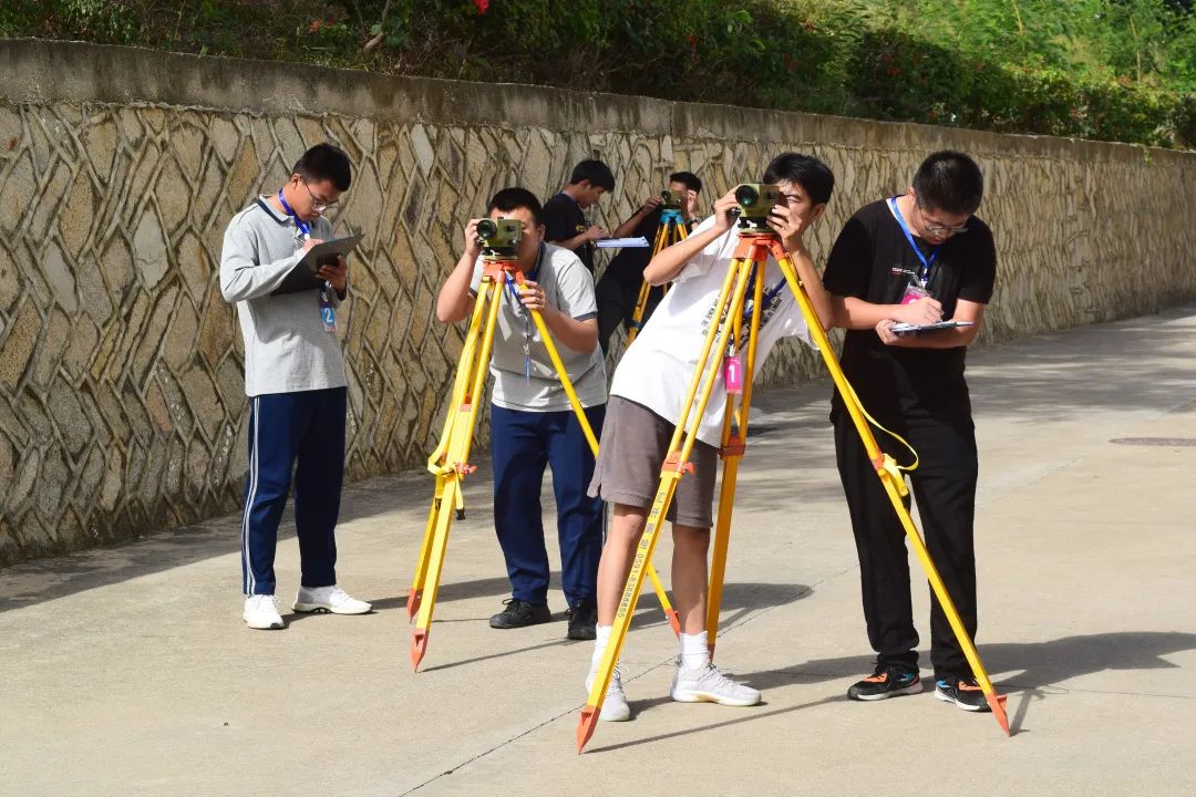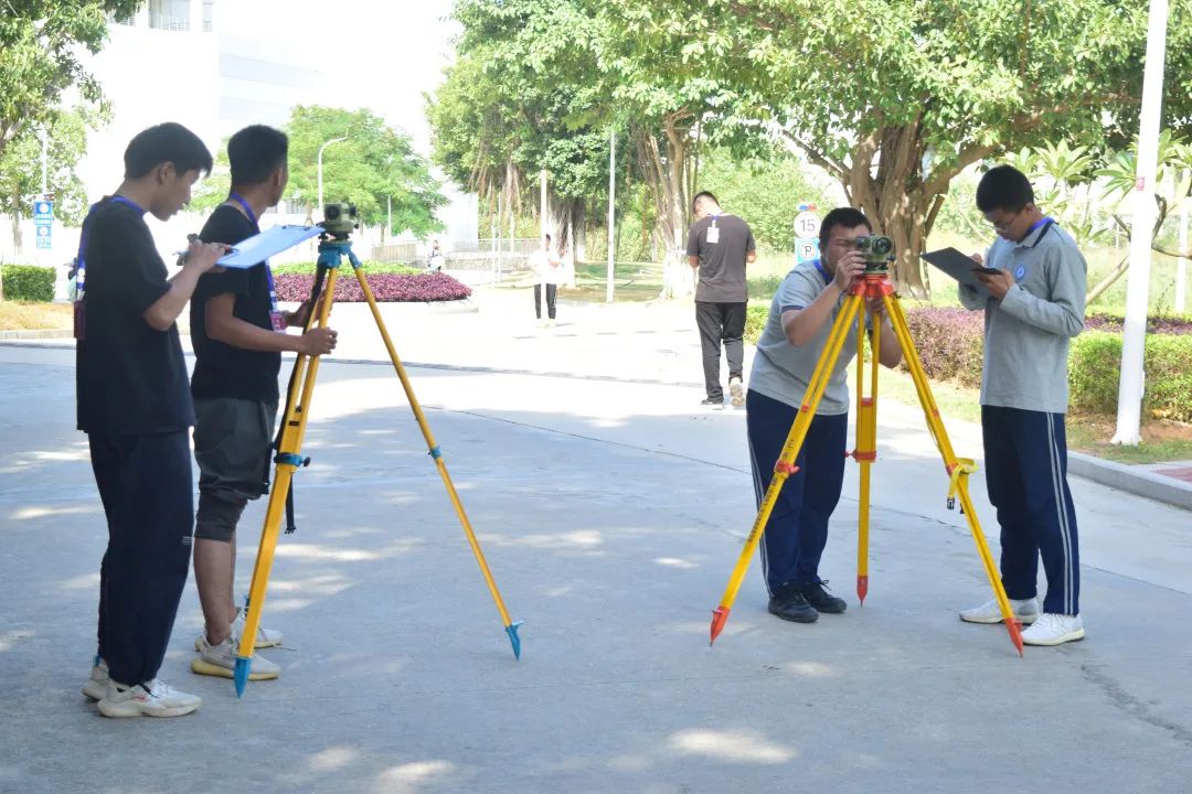 大家分工合作、相互配合,熟练地架设仪器、立尺、读数并记录计算结果,接力完成整个赛项各个点位的测量,整个过程进行得有条不紊,充分展现了各参赛职业学校师生的精神风貌和技能水平。