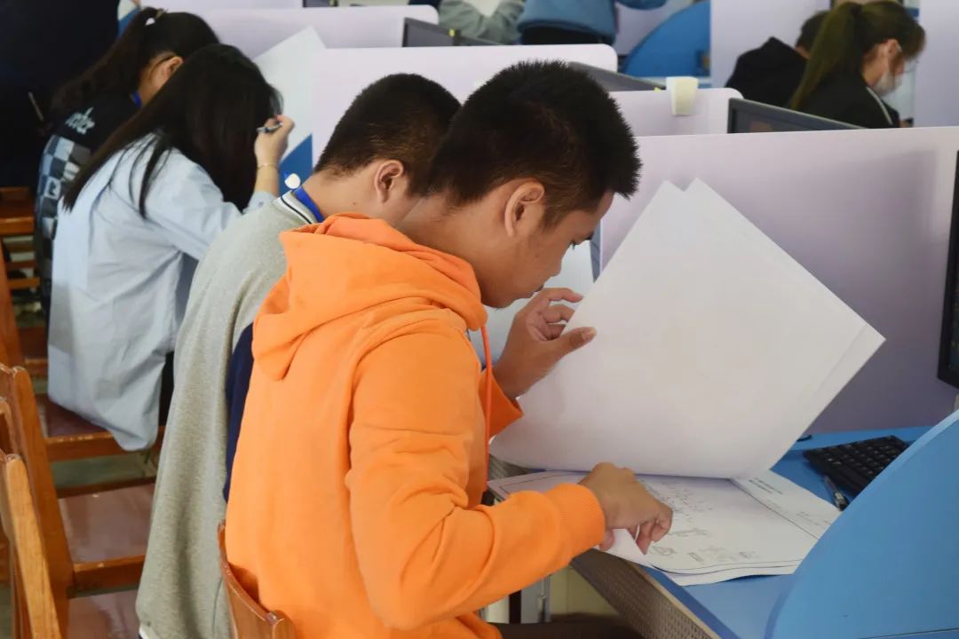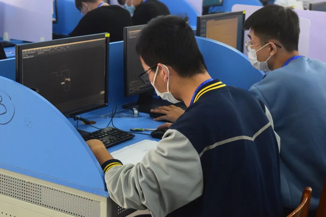 建筑CAD制图比赛也是以团体赛的方式进行,每两人为一组。选手们沉着冷静,一步一步稳扎稳打地按照竞赛要求完成考核内容。