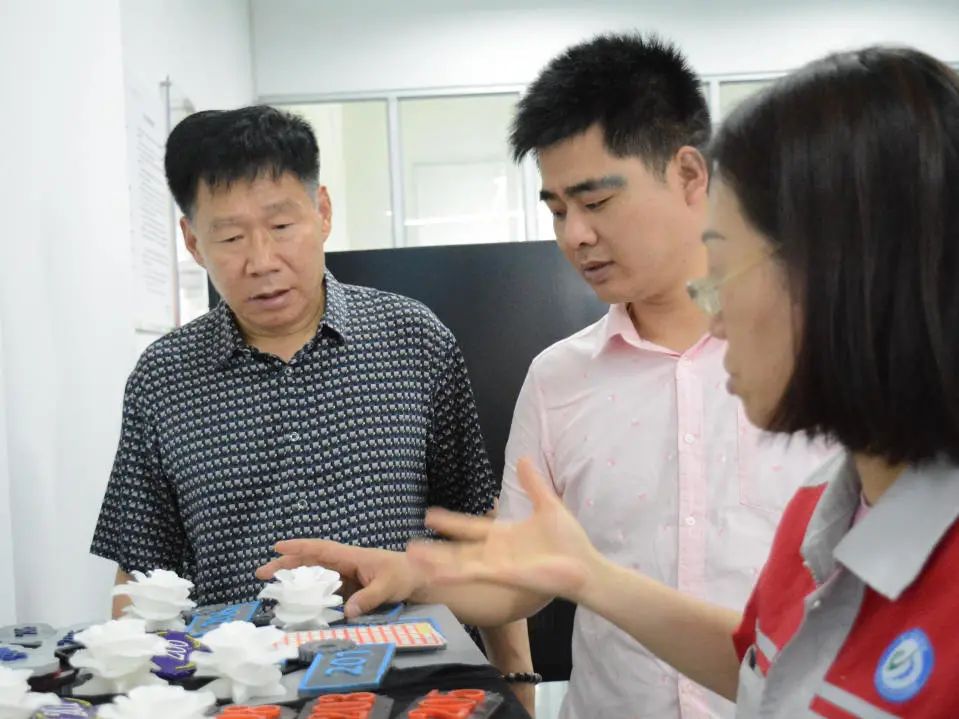 随后,调研组前往3D打印技术应用专业示范基地进行实地考察,现场了解了实训室的软硬件建设和应用情况,并不时被展架上3D打印作品所吸引,对同学们所掌握的技能表示认可。