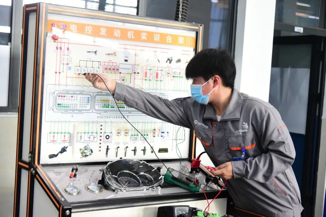 该赛项直接对标世界技能大赛汽车技术项目,设有发动机管理,发动机诊断,车身电气,电气构建,制动系统,定位、悬架与转向,发动机测试,发动机测量共八个模块,全方面考察选手对于汽车机械、电气、电子、控制以及各系统的知识、技能水平。