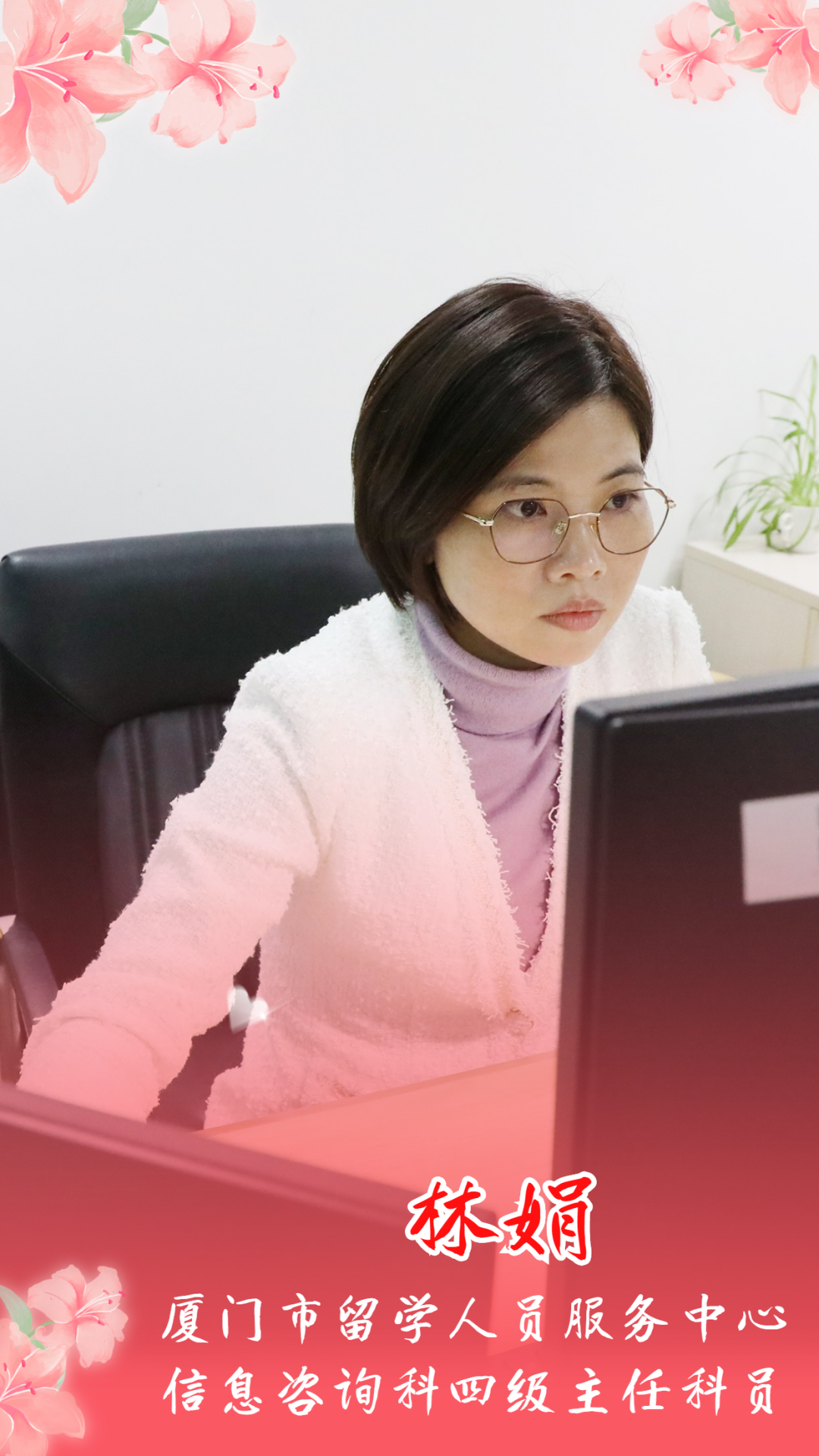 2022年,厦门市留学中心为留学人才群体量身打造了线上综合服务载体——“i海归”掌上通平台,成为海内外留学人才了解厦门、对接厦门的窗口,受到留学人才和用人单位肯定。而这个平台的背后,离不开林娟和同事们的共同努力。