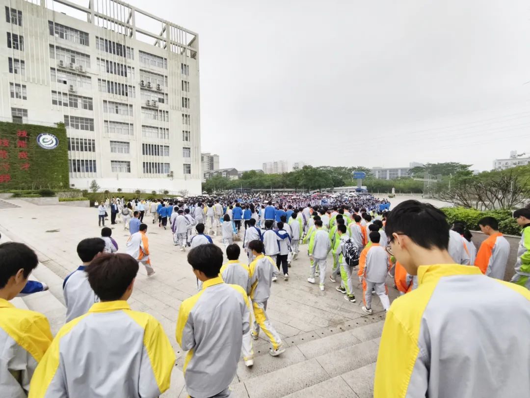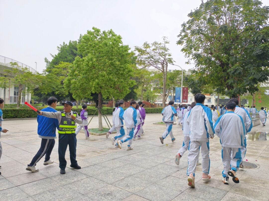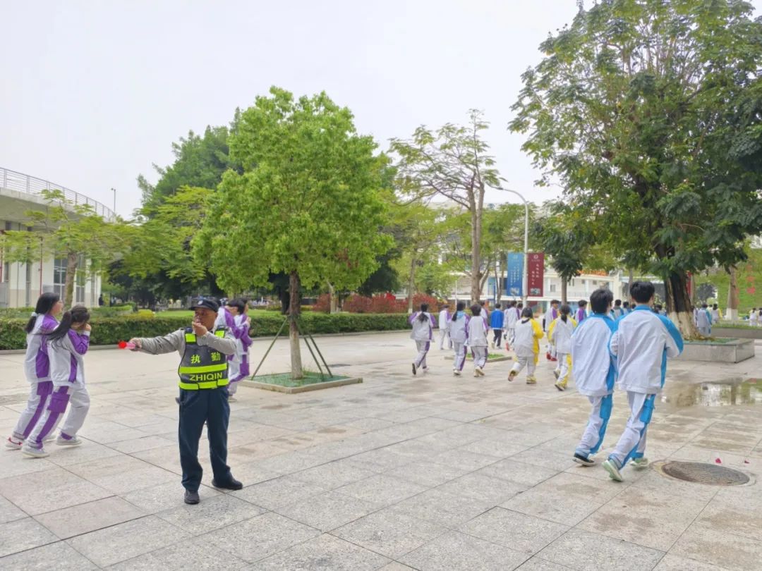 疏散到升旗广场后 大家按照班级形成队列 在指定位置站好 各班班主任迅速清点人数 确保所有学生顺利到位 整个演练过程快速高效
