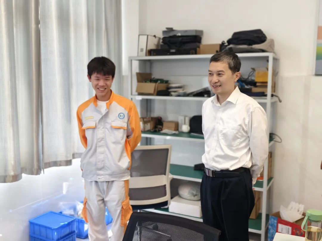 周昱局长与世赛获奖选手邹邦亲切交流 勉励他要勤奋努力,再创佳绩