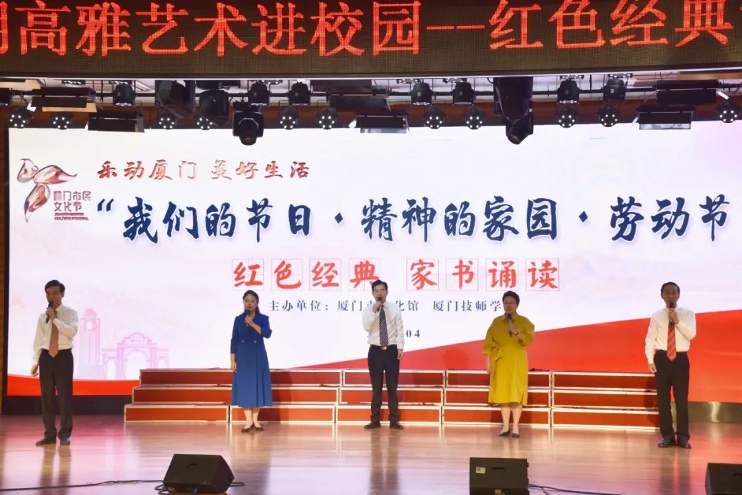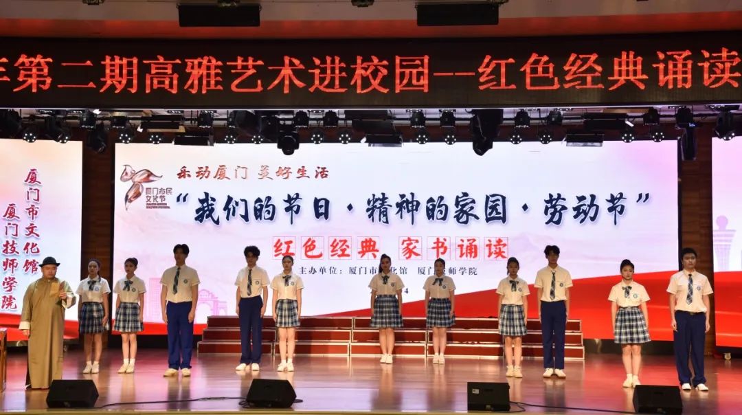 4月24日,由厦门市文化馆主办,MG游戏网站协办的“我们的节日·精神的家园·劳动节” 红色经典家书诵读活动在学院举行。 本次活动是学院“高雅艺术进校园”系列活动之一,邀请了厦门市技工院校“1+X”联盟成员单位的师生齐聚一堂,共同品阅红色经典、感悟红色精神,重温前辈们的革命精神和家国情怀。