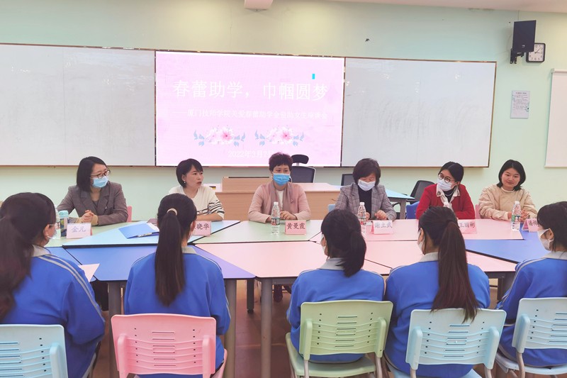 3月7日,在第112个国际劳动妇女节来临之际,我院举办了以关爱春蕾助学金资助对象为主题的“春蕾助学,巾帼圆梦”专题座谈会。厦门市妇女联合会党组成员、副主席谢立武受邀参加,学院党委委员、副院长黄曼霞,团委书记庄晓华等参加座谈。