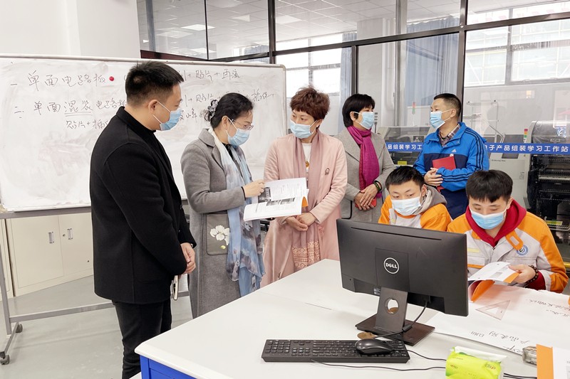 陈调研员详细了解了学院的发展历程、技能人才培养模式、学生实习就业情况和社会培训工作的开展情况。张家雄院长表示学院以产教融合、校企合作为主线,以学生为中心,创新性地开展三大课程体系建设,推进认知、跟岗和顶岗实习的全员学徒制工程,重点培养符合行业企业需求的中、高级技术技能人才。双方就推动政企校协联动机制,深化学院与行业企业交流合作,共谋共建、服务地方产业发展进行了深入交流。