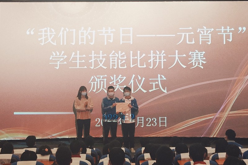 接着,会议表彰了在“我们的节日——元宵节 学生技艺比拼大赛”中表现优秀的同学,鼓励大家多与家人沟通交流,将所学的技能回馈家人,充分展现技能成就精彩人生的内涵。