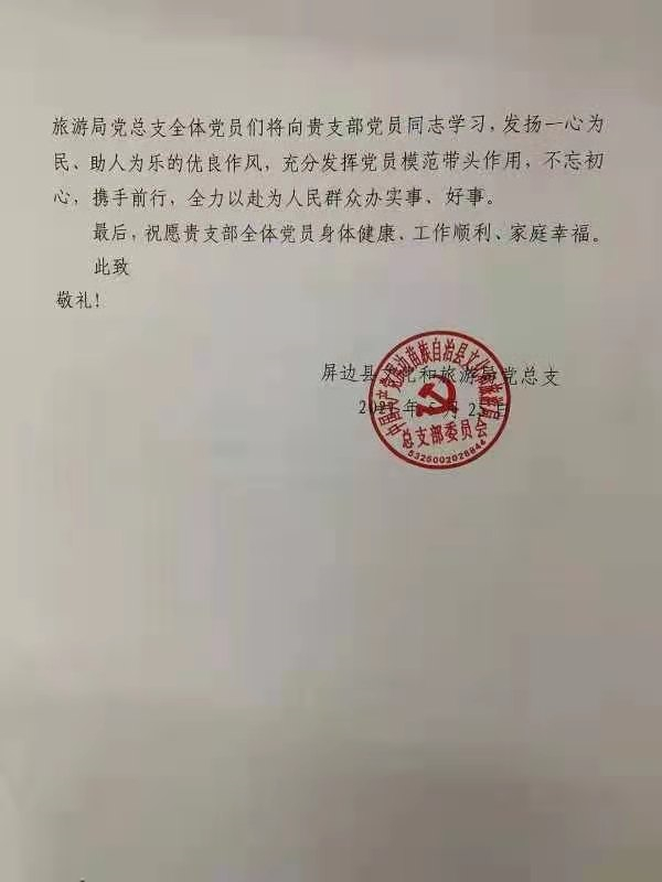 据悉,屏边县文旅局党总支将于“七·一”建党节将第四党支部的爱心送到群众手中。第四党支部表示,将继续以实际行动发挥党员的先锋模范作用,以多种形式为群众办实事,办好事。