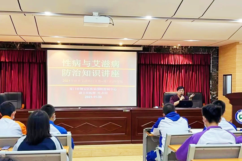 活动邀请了厦门市翔安区疾病预防控制中心疾控科科长、副主任医师叶永同为学院师生讲授了艾滋病、性病的防治知识。讲座上,叶科长就性病、艾滋病的症状、传播途径、危害与预防作了深入浅出地讲解,以一组组真实数据、一个个警示案例教育引导学生要正视艾滋、关注艾滋、预防艾滋,树立“每个人都是自己健康的第一责任人”的个人意识,学会自尊、自重、自信、自爱,避免因错误的认知和态度而产生严重后果。同学们听后都觉得受益匪浅。