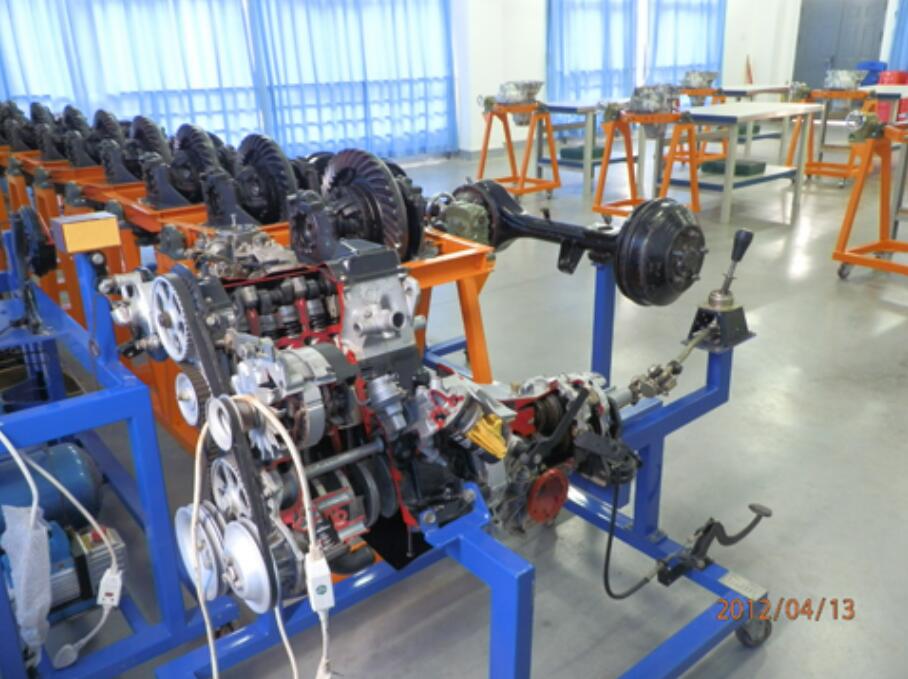 教学设备:手动变速器拆装台架-16台、主减速器拆装实验台-16台、后桥台架-8台、转向器-16台、维修工具车及组套(世达9501)。