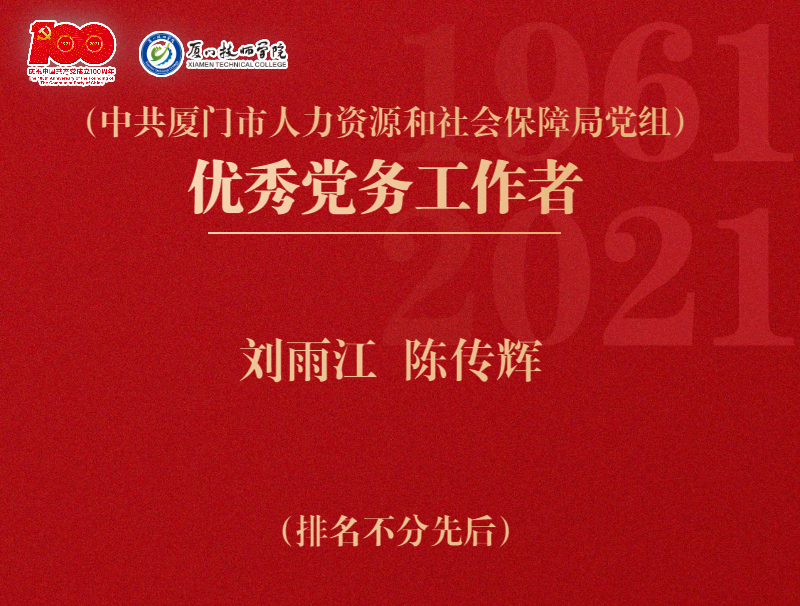 会议在庄严的国歌声中拉开序幕。随后,学院党委副书记、纪委书记范承达宣读表彰决定。学院党委班子领导为获得中共厦门市委市直机关工作委员会、中共厦门市人力资源和社会保障局党组、中共MG游戏网站委员会“两优一先”的先进集体和优秀个人颁奖。