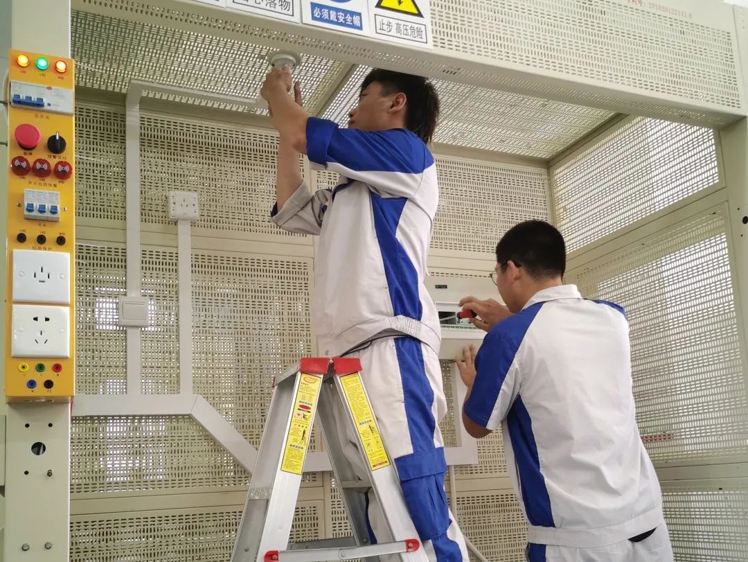 在照明线路装调比赛中,参赛选手根据赛项要求,争分夺秒地对照明线路进行布线安装和调试。小组成员分工合作,不仅注重质量和速度,更追求横平竖直的完美工艺。