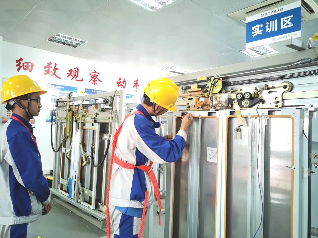 电梯厅轿门安装与调试,这项比赛可谓是集技术与观赏为一体。瞧,选手们即便站在平面上,仍然以高楼层的操作要求规范自己,个个精神抖擞,信心满满,欲与对手试比高。