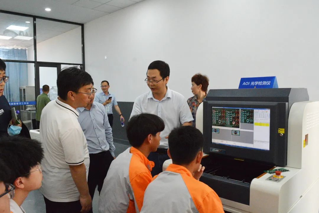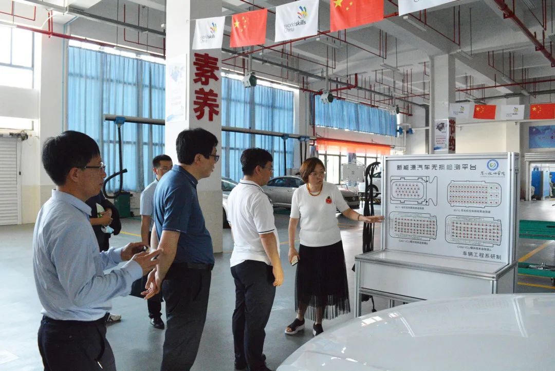 一路上,考察组成员兴趣浓厚,双方就学院课程教学情况、实操培训内容、一体化教学模式、校园文化建设等作了进一步的交流。