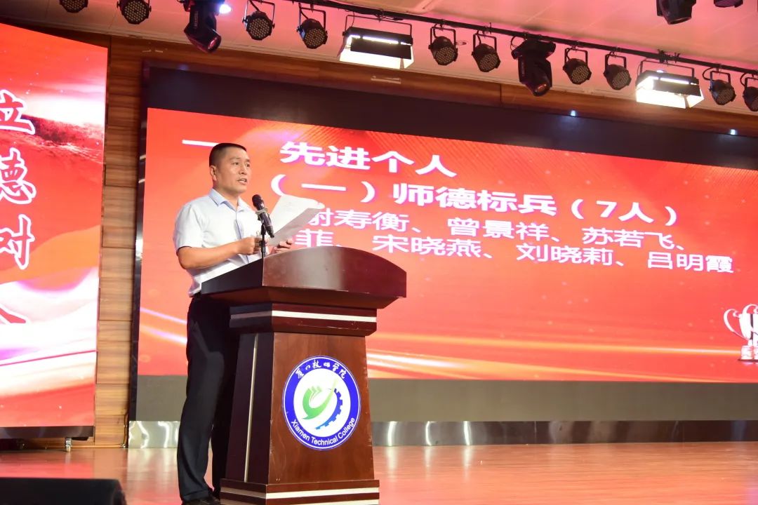 廖耿彪老师作为教师代表在大会上进行发言,他表示,迎接新时代的挑战,我们已做好了准备!作为一名技工院校的教师,我们会把“认真负责”作为自己的座右铭,力争把各项工作都做得更好,用教师的职业道德衡量自己、鞭策自己!