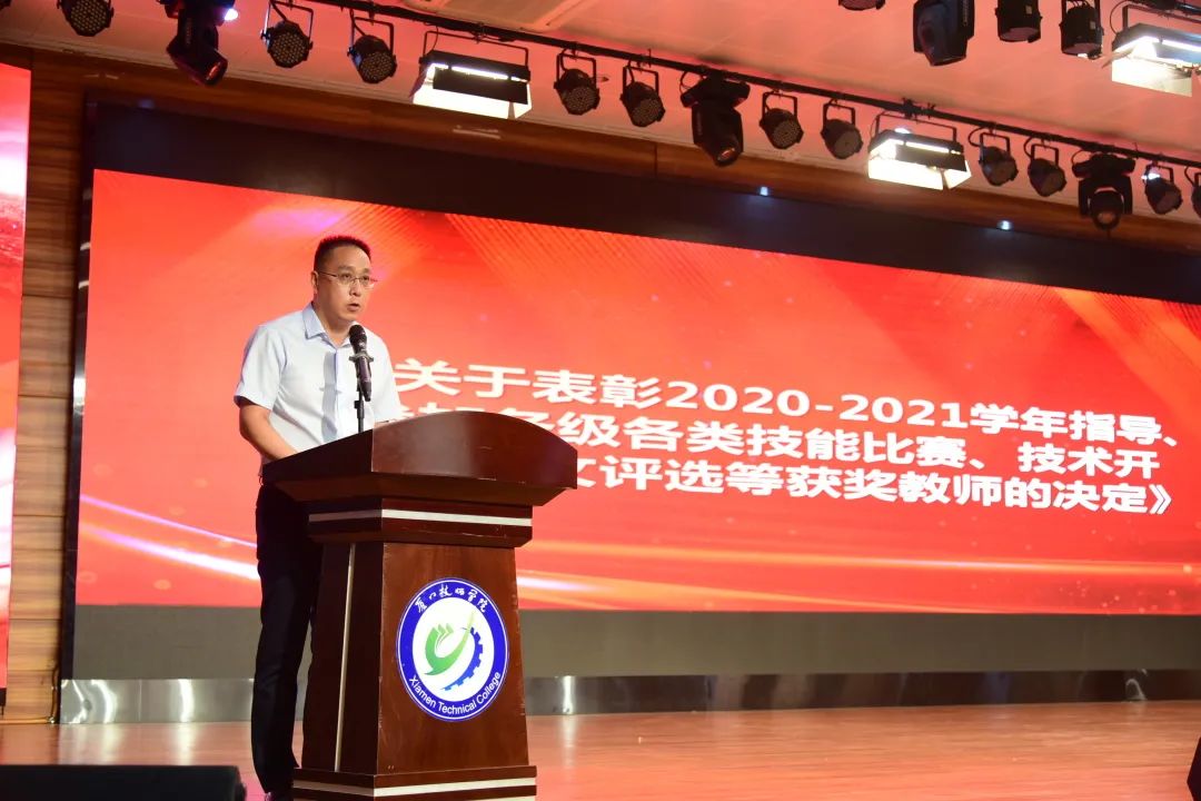 会议由学院副院长黄曼霞主持。学院副院长赵广平宣读了《关于表彰2020-2021学年指导、参加各级各类技能比赛、技术开发、论文评选等获奖教师的决定》;学院副院长张浩舟宣读了《MG游戏官网关于表彰2020-2021学年先进集体和先进个人的决定》。