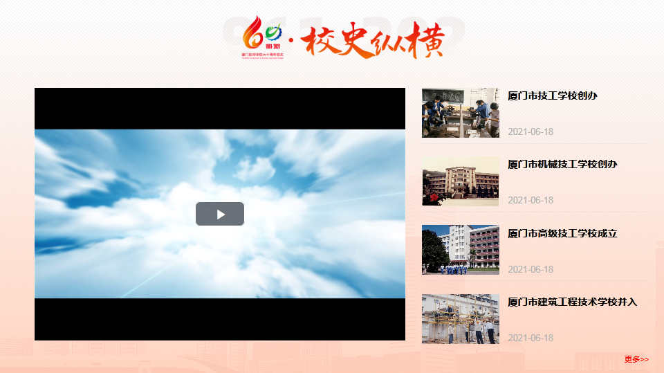 “校史纵横”板块,主要以视频、图文的形式介绍MG游戏网站建校60周年来重要的历史节点,旨在追忆学院的建校历程及发展轨迹。