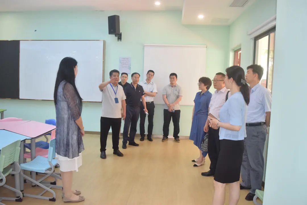考察调研的第一站,是我院的学生身心健康发展中心。调研组一行在中心负责人沈奕瑄的引导下,参观了心理健康教育室、团辅咨询室、宣泄室、放松室、沙盘游戏室等,了解了中心的运行情况和各功能室的使用情况,对中心在促进师生身心健康发展方面所开展的工作给予高度肯定。