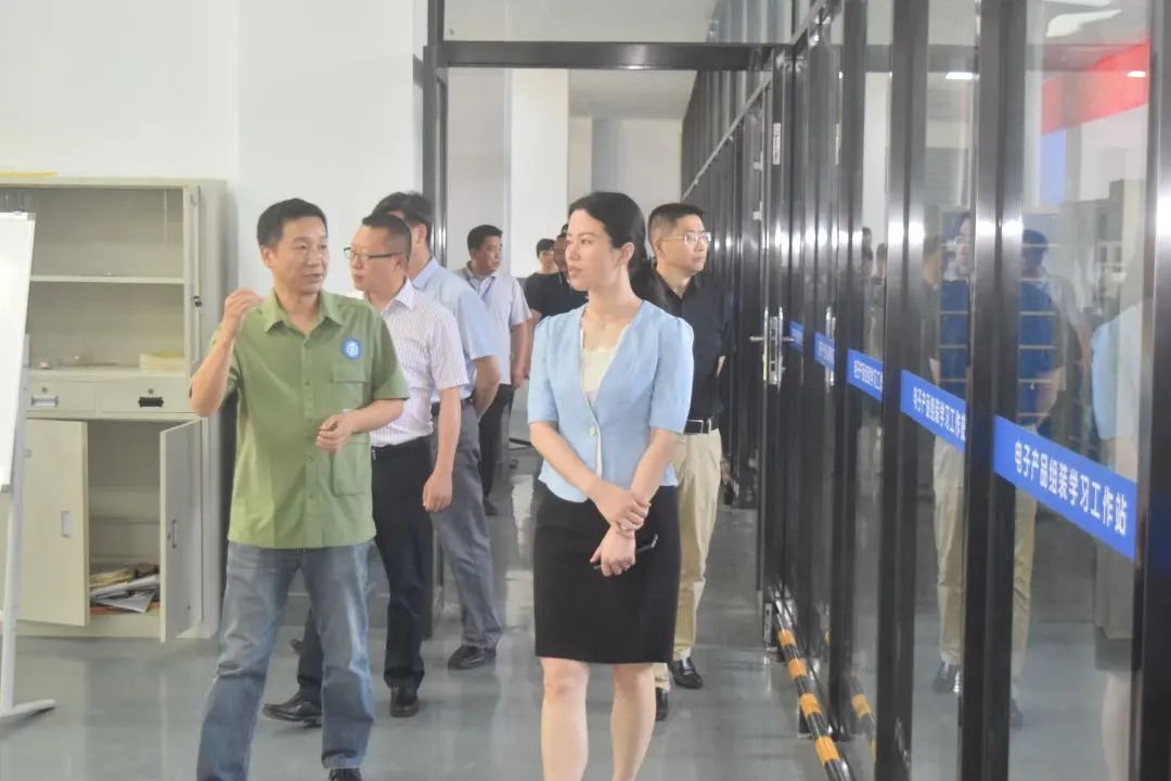 紧接着,调研组一行来到电子光电工程系,实地考察了世赛电子项目实训室、电子工艺与制造实训平台、电子智能产品应用实训中心等场地,详细了解了各实训室的规划设计理念、功能定位、运营理念和当前的建设运营情况。
