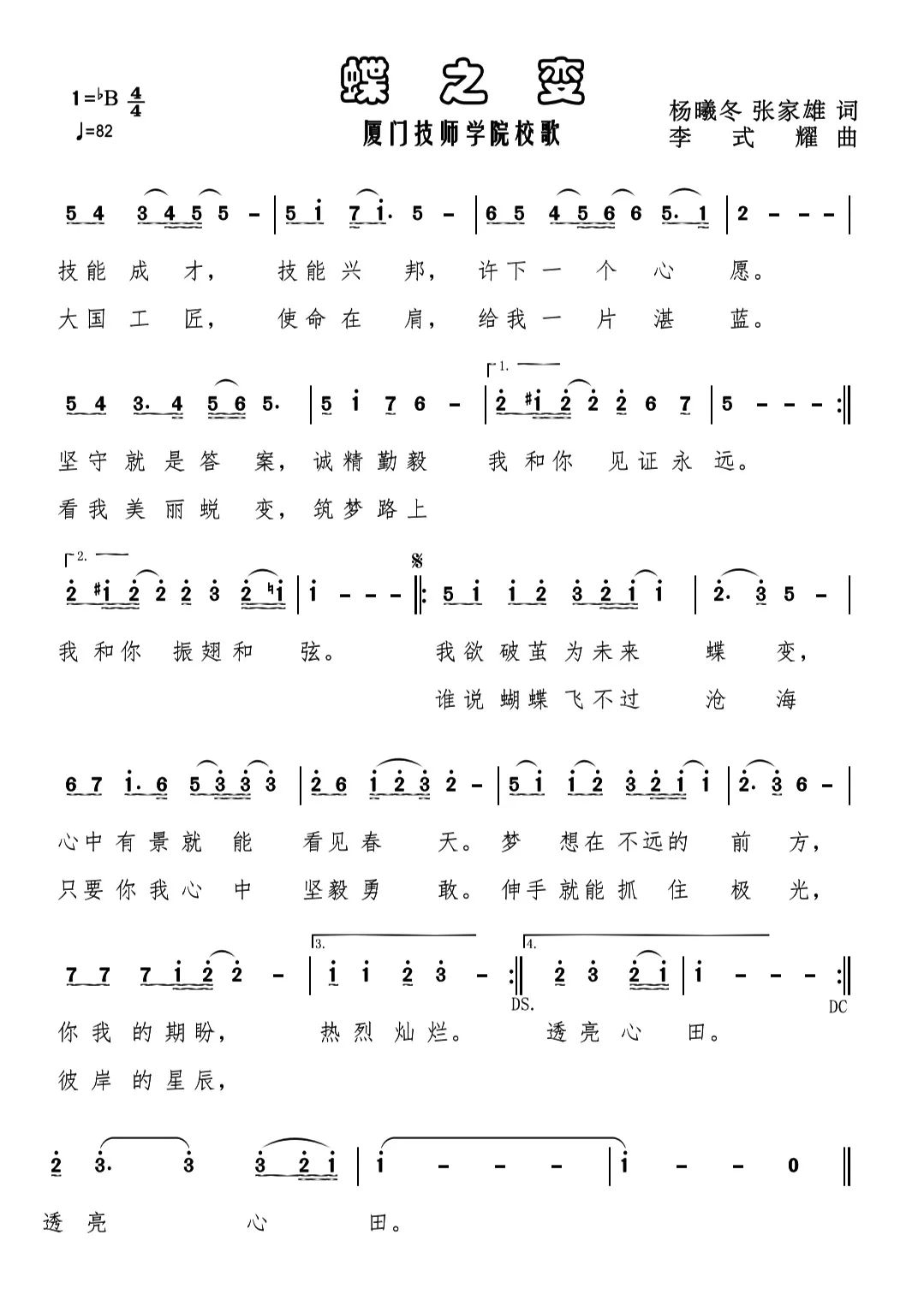 歌词看似简单,写首好词不易。有时为了几个字眼的词序变化,或是一句词的起承转合,得琢磨好几天。一首好的歌曲,歌词不仅要朗朗上口,还要能打动人,有令人产生共鸣的感觉。为此,在创作歌词时,我还与学院院长张家雄深入交流,默契配合,完善歌词,不仅用“蝶变”鼓励了同学们勇敢追梦,还讴歌了默默坚守岗位的教师们的辛勤付出!